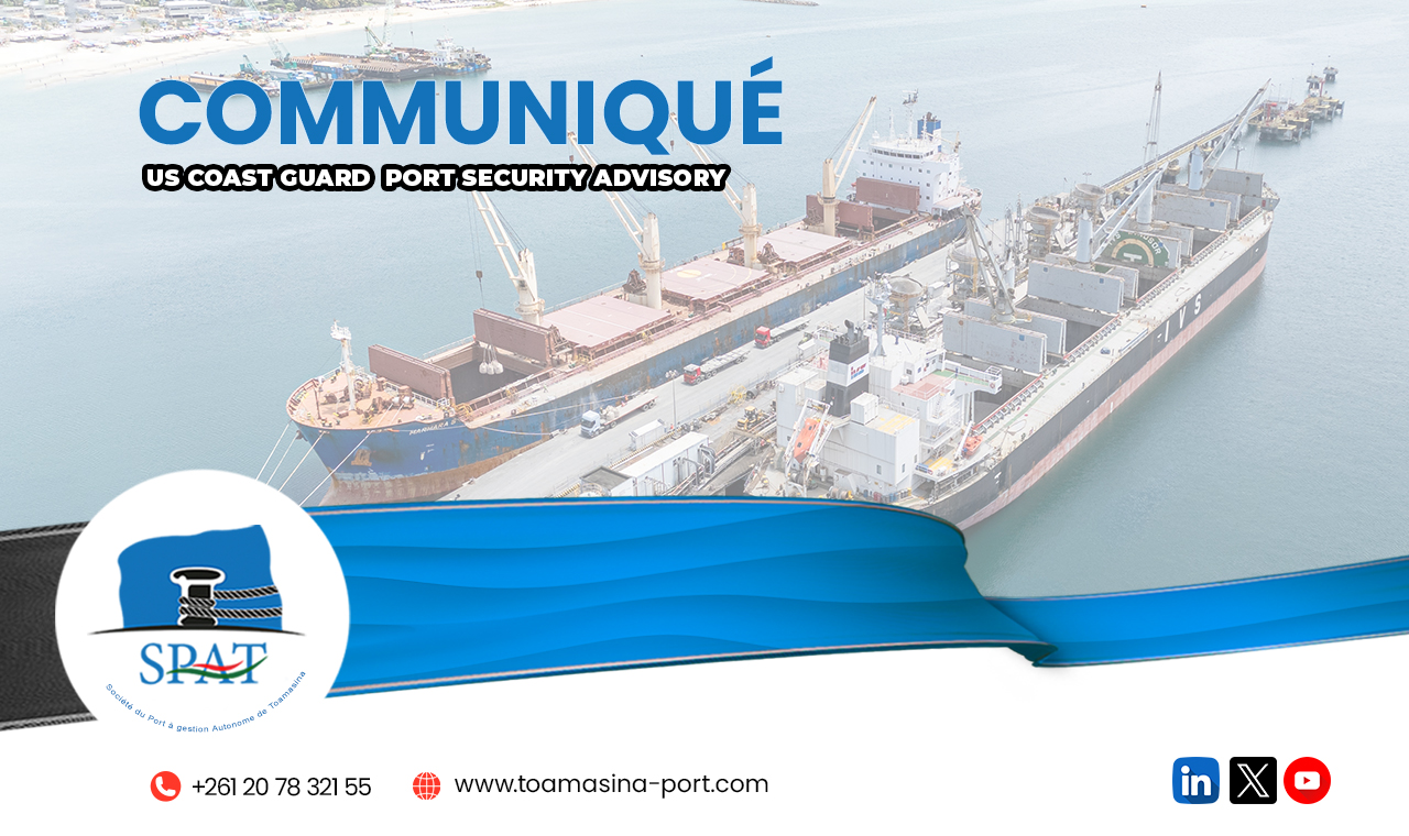 La Direction Générale de la SPAT tient à apporter des éclaircissements importants suite à la notification de l'U.S. Coast Guard relative à la révocation des exemptions de sûreté pour les installations portuaires de Madagascar, effective au 25 février 2026.